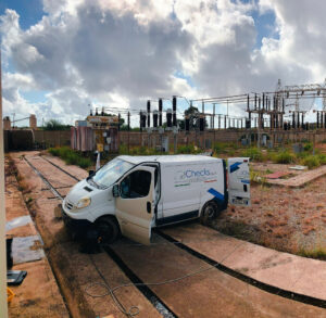 Furgone Checks Spa sul luogo di lavoro, per verifica impianti di messa a terra secondo il dpr 462/01